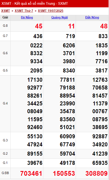 Kết quả xổ số miền Trung ngày 20/7/2025. KQXSMT 20/7