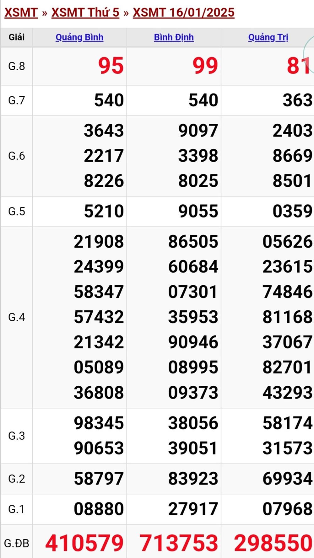 - Xổ số miền Trung thứ năm được mở thưởng tại Quảng Trị, Quảng Bình, Bình Định.