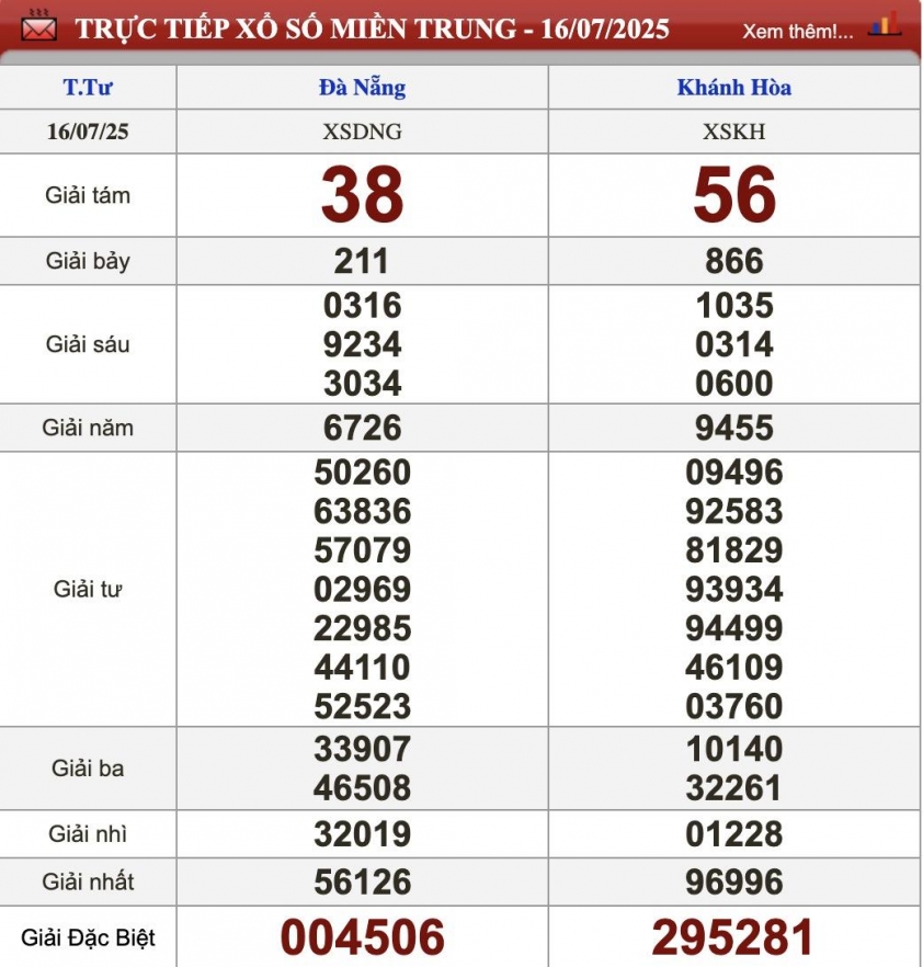 XSMT 16/7, kết quả xổ số miền Trung (KQXSMT) ngày 16/7/2025.