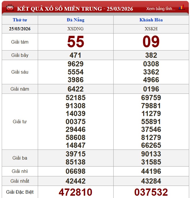 Kết quả xổ số miền Trung ngày 25/3/2026