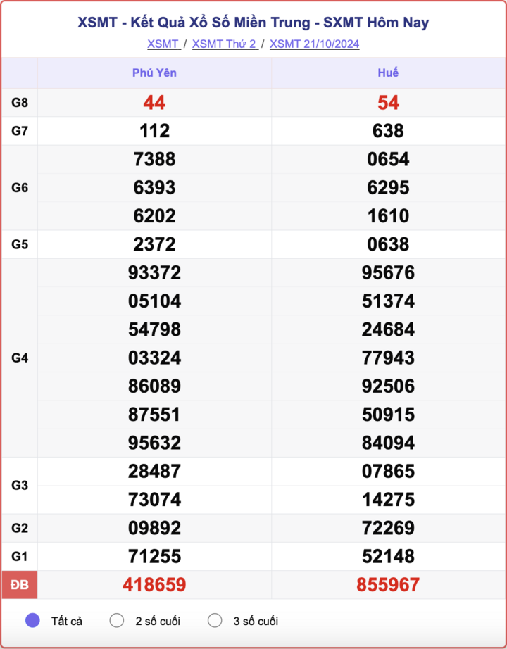 XSMT 21/10, kết quả xổ số miền Trung hôm nay 21/10/2024.