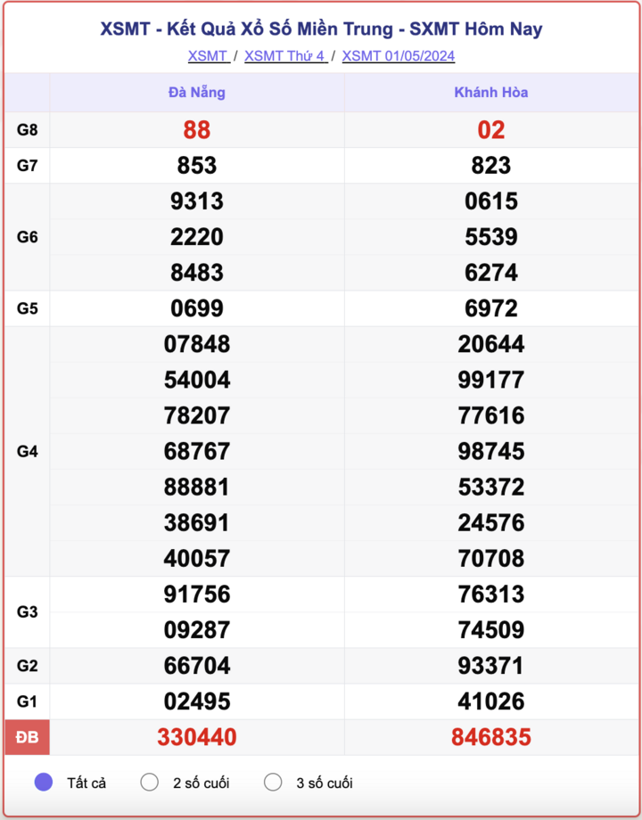 XSMT thứ tư, kết quả xổ số miền Trung ngày 1/5/2024