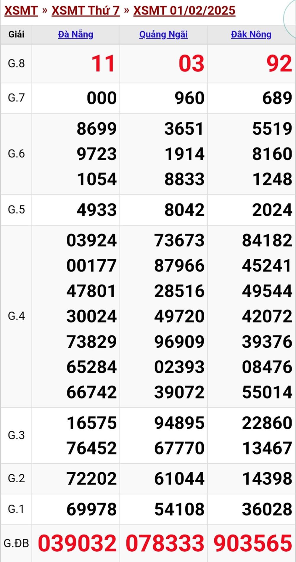 Kết quả xổ số miền Trung (XSMT) được thực hiện lúc 16 giờ 30 phút và được mở thưởng bởi Công ty xổ số kiến thiết của tỉnh Quảng Nam (XSQNA), Đắk Lắk (XSĐL). Kết quả của đài nào sẽ được mở thưởng tại trường quay của tỉnh đó. Xổ số hôm nay - KQXSMT ngày 4/2 được quay thưởng bắt đầu từ giải tám cho đến giải nhất, cuối cùng là công bố kết quả giải đặc biệt.