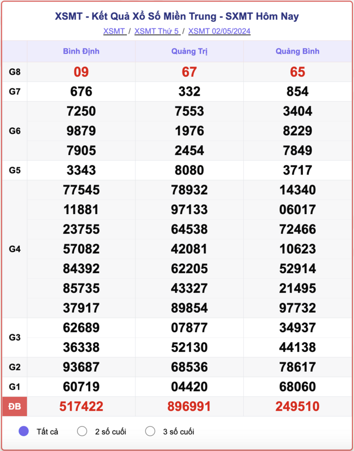 XSMT thứ năm, kết quả xổ số miền Trung ngày 2/5/2024