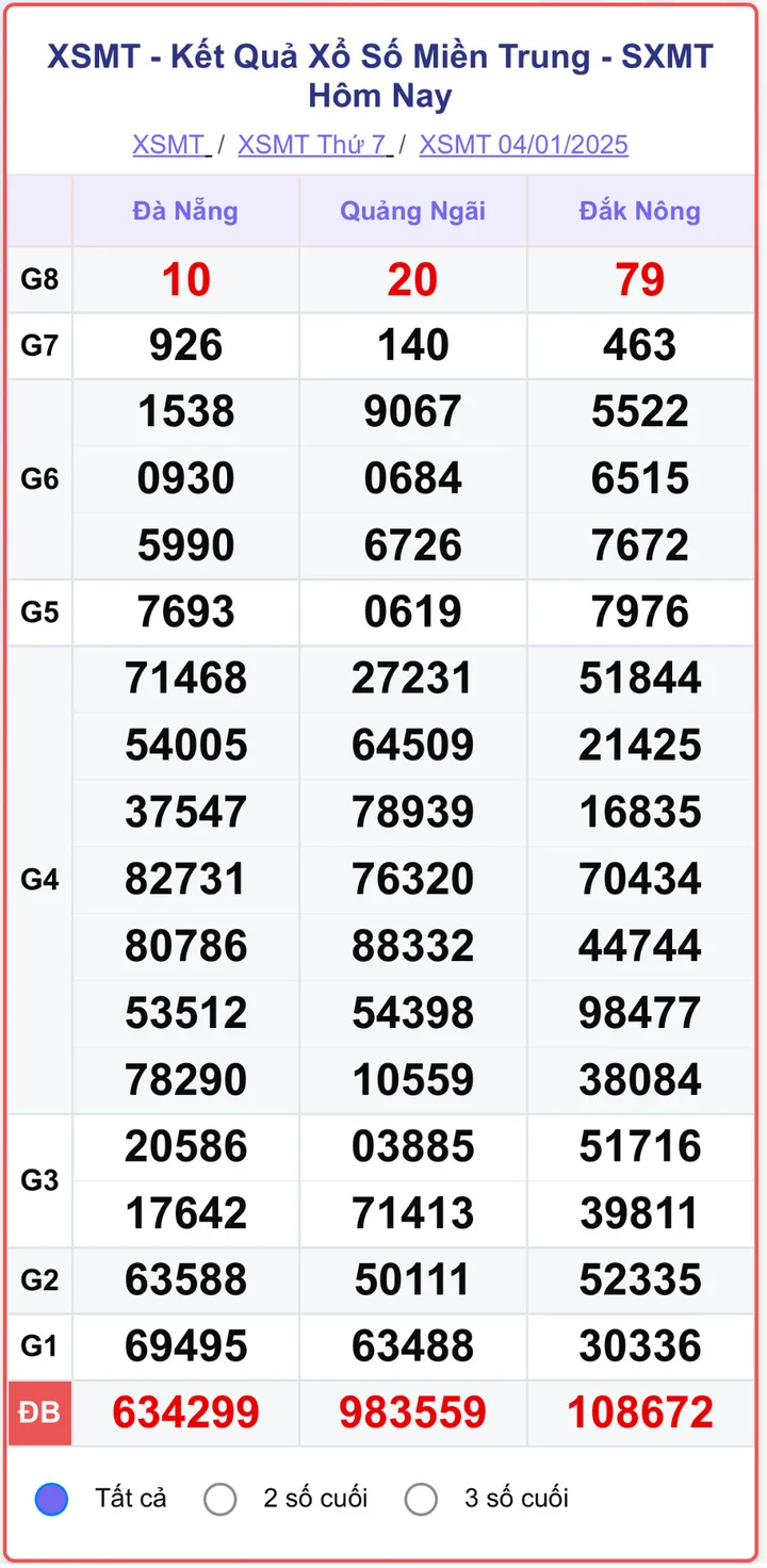 Trực tiếp Kết quả xổ số miền Trung hôm nay 7/1/2025, kết quả xổ số miền Trung hôm nay 7/1, Kết quả xổ số hôm nay thứ Ba ngày 7/1/2025
