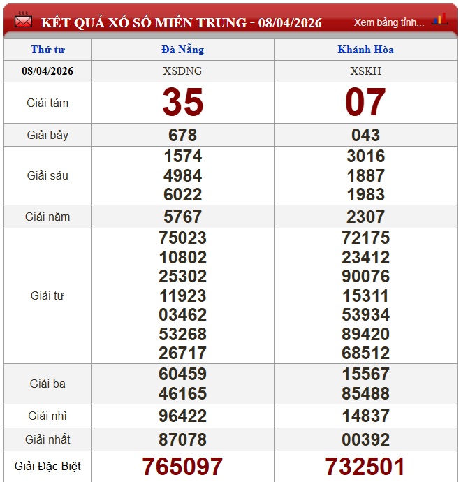 Cập nhật Kết quả xổ số miền Trung hôm nay 9/4/2026 - XSMT 9/4/2026 nhanh nhất và chính xác nhất tới quý độc giả.