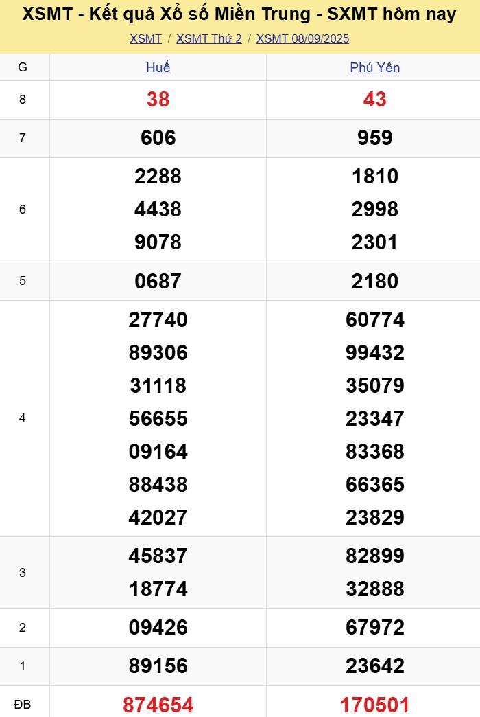 Kết quả xổ số miền Trung (XSMT) hôm nay ngày 8/9