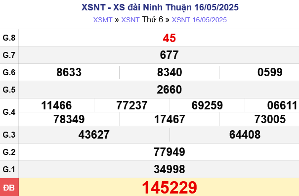 XSNT 16/5, kết quả xổ số Ninh Thuận hôm nay 16/5/2025.