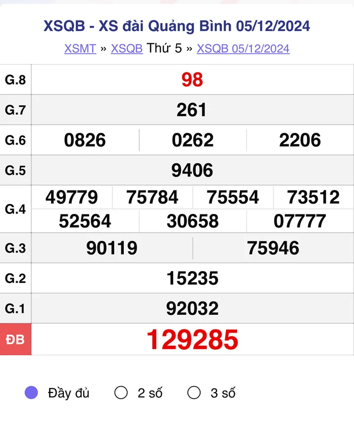 XSQB 05/12, kết quả xổ số Quảng Bình hôm nay 05/12/2024.