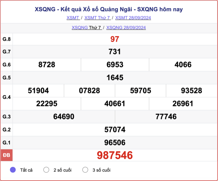 XSQNG 28/9, kết quả xổ số Quảng Ngãi hôm nay 28/9/2024.