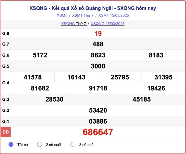Xem lại kết quả xổ số Quảng Ngãi các kỳ trước