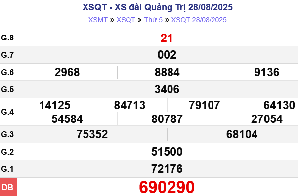 XSQT 28/8, kết quả xổ số Quảng Trị hôm nay 28/8/2025.