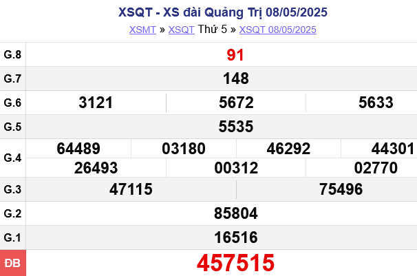 XSQT 8/5, kết quả xổ số Quảng Trị hôm nay 8/5/2025.