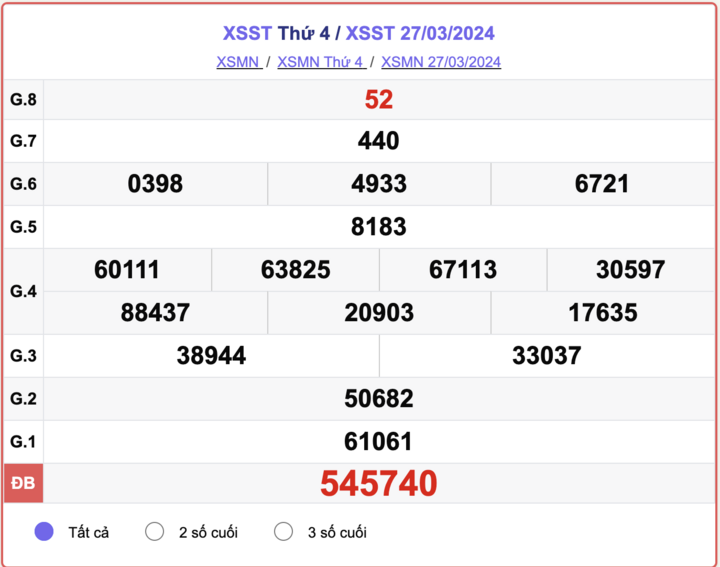 - Kết quả XSST ngày 27/3/2024