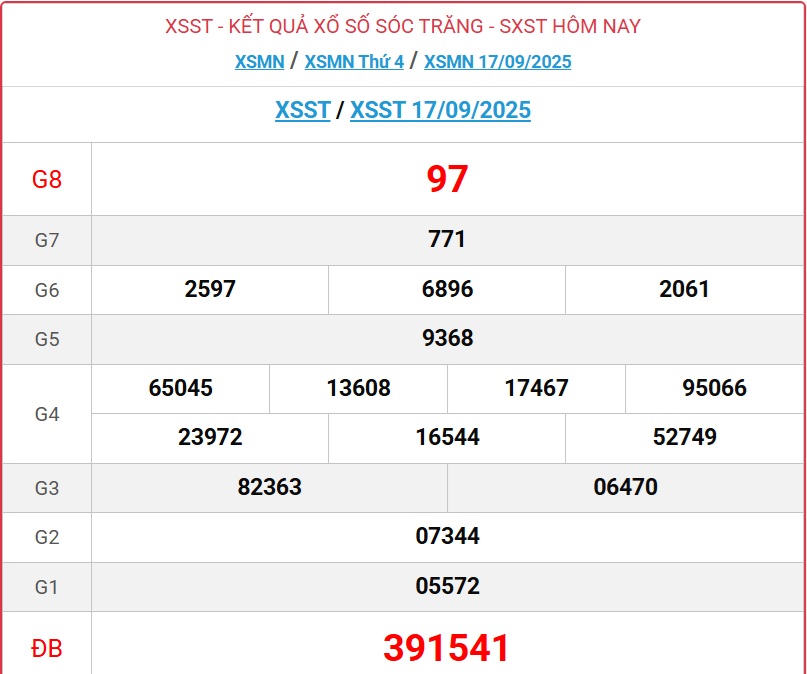 Kết quả xổ số Sóc Trăng Thứ Tư ngày 17/9/2025