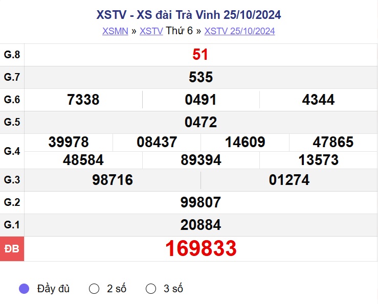 Xem lại kết quả xổ số Trà Vinh các kỳ quay trước