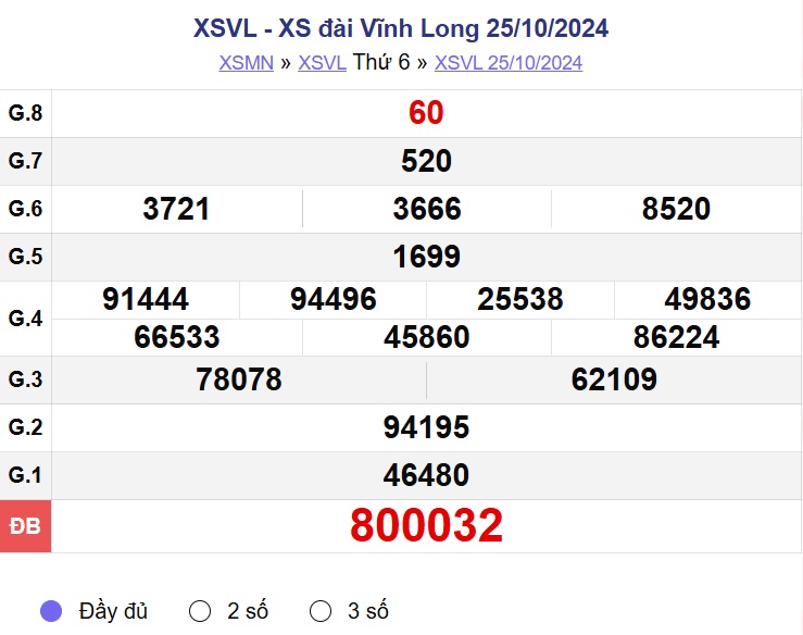 XSVL 25/10, kết quả xổ số Vĩnh Long hôm nay 25/10/2024.