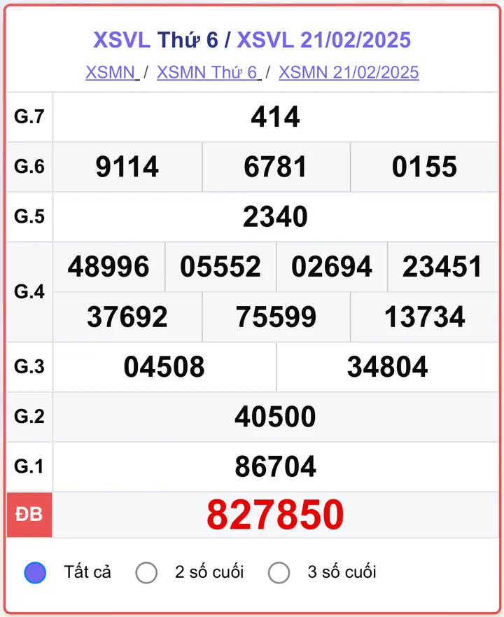 Xem lại kết quả XSVL các kỳ trước