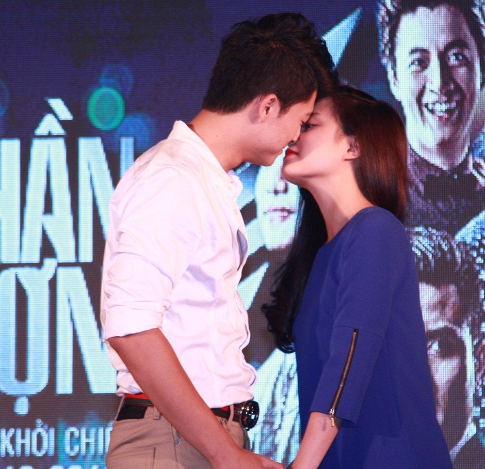 Trong buổi họp fan, Hoàng Thùy Linh và Harry Lu còn “môi kề môi” trước mặt nhiều người hâm mộ.