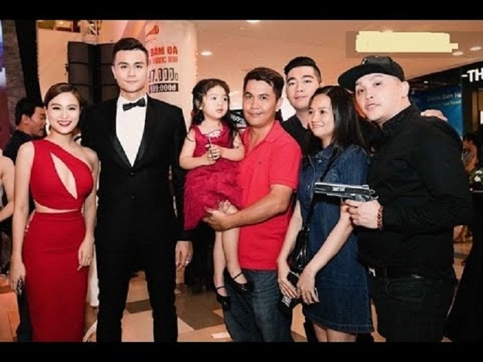 Hoàng Thùy Linh rạng rỡ xuất hiện bên gia đình Vĩnh Thụy trong buổi ra mắt phim “Truy sát”.
