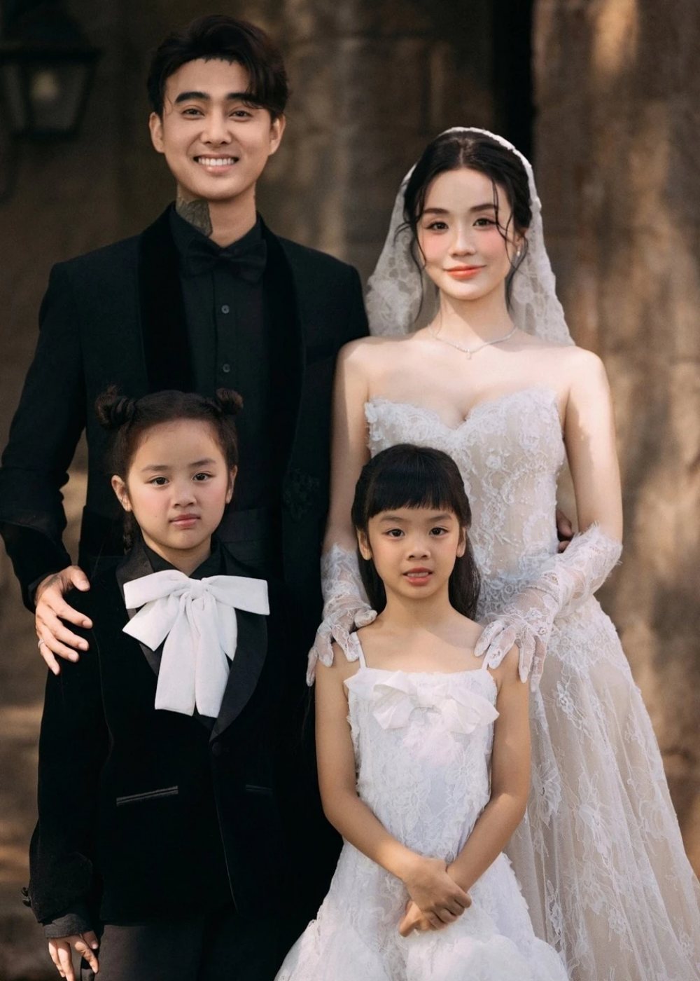 Sáng 13/7, trước thềm hôn lễ diễn ra, Đạt G và Bảo Ngọc chia sẻ bộ ảnh cưới. Trong những thước hình lãng mạn, Đạt G diện vest trong khi vợ anh gợi cảm với đầm ren cúp ngực. Hai con riêng của Bảo Ngọc cũng góp mặt trong bộ ảnh cưới.
