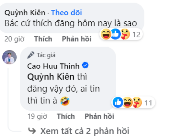 Bên dưới phần bình luận, bác sĩ Thịnh cũng để lại bình luận như sau: "Đăng vậy đó, ai tin thì tin à?".