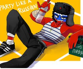 Russia thường được miêu tả là cao (và đôi khi mảnh khảnh) và đang mặc một chiếc ushanka. Họ thường mặc áo sơ mi sọc xanh nhạt (đôi khi quá khổ) và quần jean.