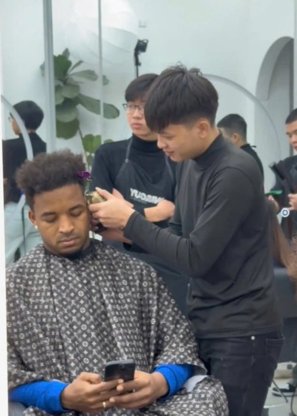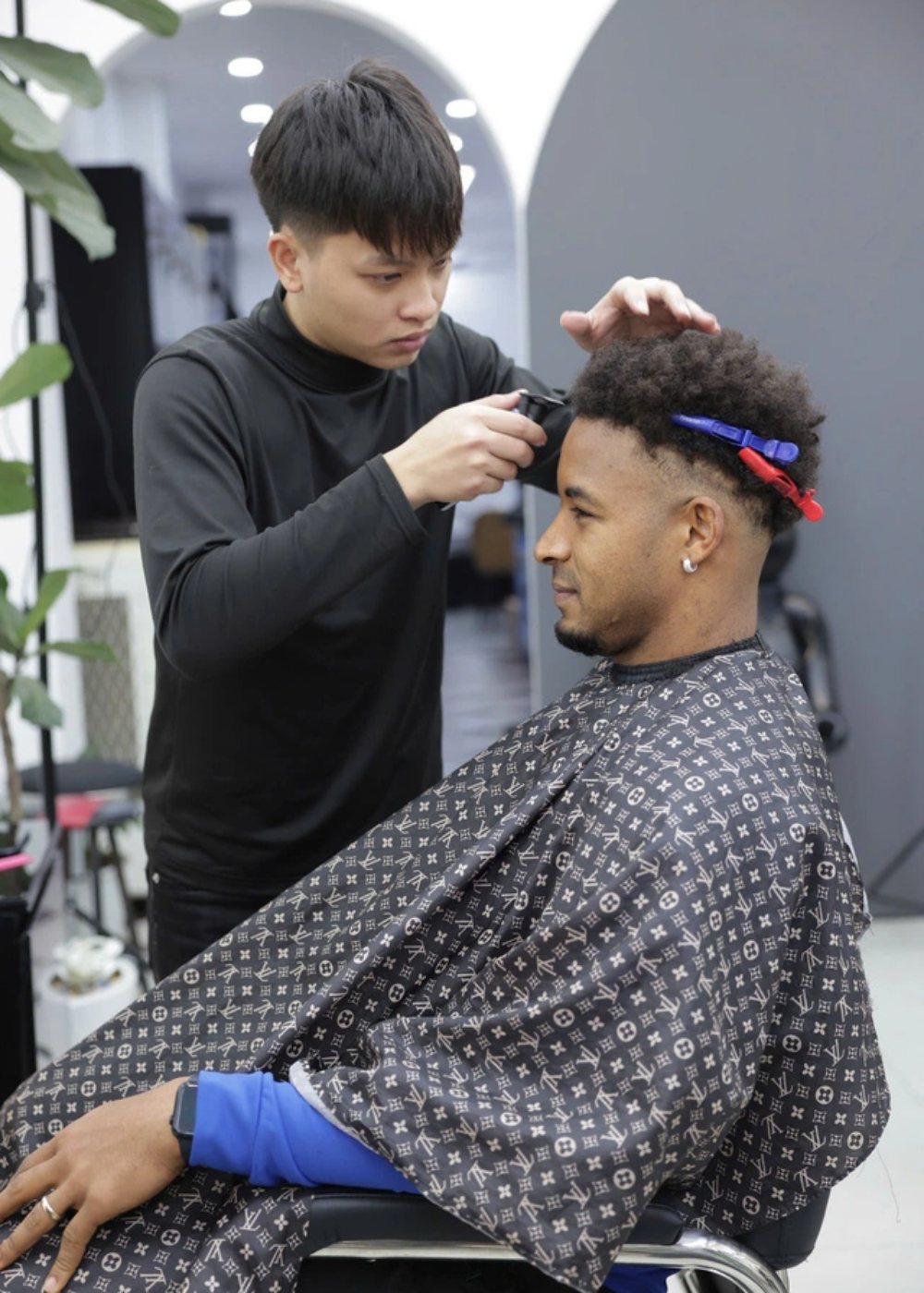 Trong lúc Quân hớt tóc, anh chủ tiệm đã xin phép quay một chiếc clip ngắn ghi lại khoảnh khắc Quân và cầu thủ Xuân Son.