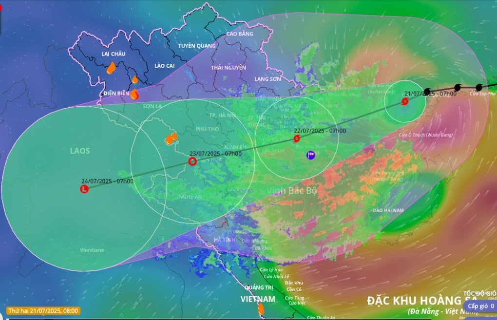 Dự báo trong ba ngày 21-23/7, khu vực Đông Bắc, đồng bằng Bắc Bộ, Thanh Hóa và Nghệ An có mưa phổ biến 200-350 mm, có nơi trên 600 mm. Các địa phương khác ở Bắc Bộ và Hà Tĩnh mưa 100-200 mm, có nơi trên 300 mm. Mưa lớn cục bộ có thể vượt 150 mm trong ba giờ, gây lũ quét, sạt lở đất vùng núi và ngập úng vùng trũng.