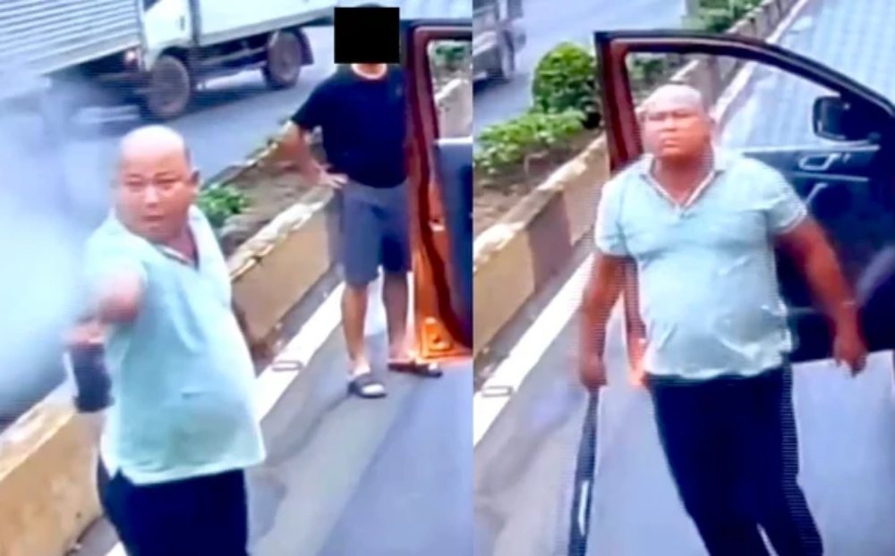 Sau khi chặn đầu xe tải, Thành cầm theo gậy sắt hùng hổ bước xuống, chĩa về tài xế xe tải với thái độ đe doạ. Chưa dừng lại, Thành tiếp tục quay lại xe và lấy bình xịt hơi cay, xịt về phía tài xế.
