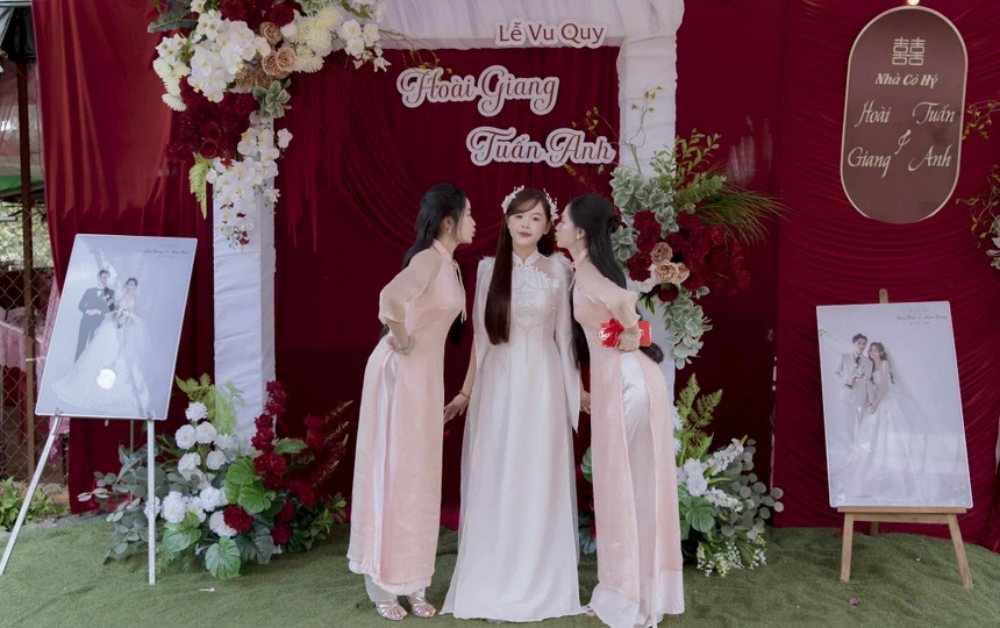 Bức ảnh chụp chung giữa cô dâu Hoài Giang và hai người bạn thân là Mỹ Quyên và Thảo Vy (đều sinh năm 2002) bất ngờ lan truyền.