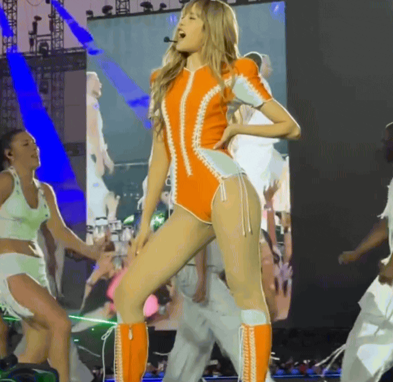 Đương nhiên, sang đến trời Tây, Lisa lại càng có dịp bung xõa. Sân khấu mới nhất, nữ idol người Thái đã đổi trang phục mới. Cô khoe dáng bốc lửa trong bộ bodysuit màu nâu vàng, bó sát người. Độ dài quần chỉ như 1 chiếc quần bơi. Nhìn từ phía sau, Lisa phô diễn toàn bộ vòng ba trước ống kính. Kết hợp với vũ đạo thiên về chuyển động cơ thể, twerking, Lisa càng khiến người xem hú hét vì quá nóng bỏng.