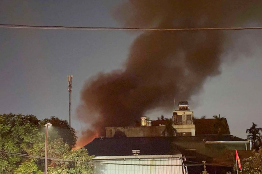Đến khoảng 22h45, khói đen vẫn bốc cao trên khu vực nhà xưởng, lực lượng chữa cháy tiếp tục phun nước làm mát, ngăn cháy lan. Toàn bộ khu vực đường Nguyễn Khoái bị bao phủ bởi mùi khét nồng nặc và lớp khói dày.