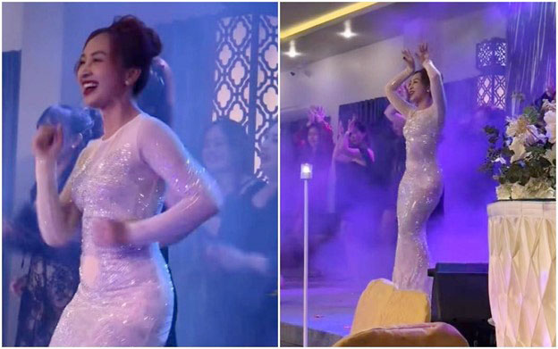 Mới đây, trên mạng xã hội chia sẻ đoạn clip ghi lại hình ảnh một người phụ nữ mặc váy lộng lẫy nhảy cực sung trên sân khấu đám cưới khiến nhiều người trầm trồ. Theo dõi đoạn clip cho thấy, người phụ nữ mặc một chiếc váy trắng đính kim sa đứng trên sân khấu đám cưới thể hiện những động tác múa chuyên nghiệp, cuốn hút.