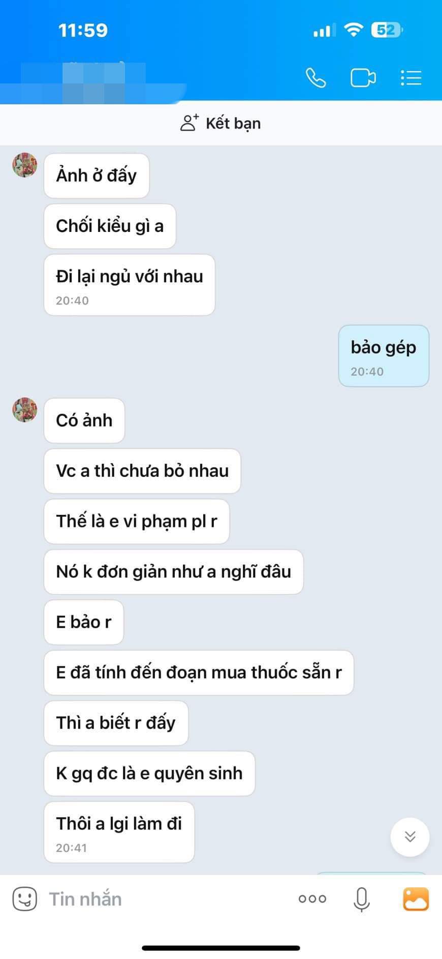 Khi anh chồng không đồng ý thì cô giáo dọa đã mua thuốc, đòi quyên sinh. Bản thân là cô giáo dạy dỗ cho con của chính thất, dạy đạo đức, cách làm người cho người khác mà bản thân lại không biết sống có đạo đức.
