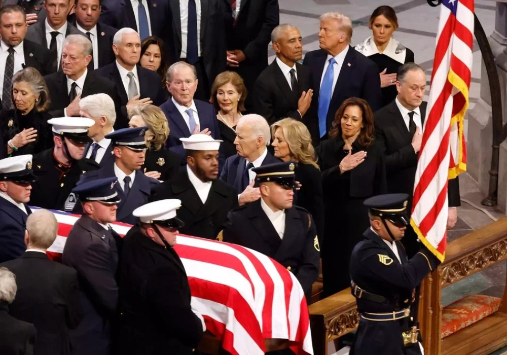 Ngày 9-1, Tổng thống Mỹ đương nhiệm Joe Biden, Tổng thống đắc cử Mỹ Donald Trump và 3 cựu Tổng thống gồm ông Barrack Obama, ông George W Bush và ông Bill Clinton đã cùng tới dự tang lễ cố Tổng thống Mỹ Jimmy Carter, tại Nhà thờ quốc gia Washington (ở thủ đô Washington D.C, Mỹ), theo hãng tin Reuters.