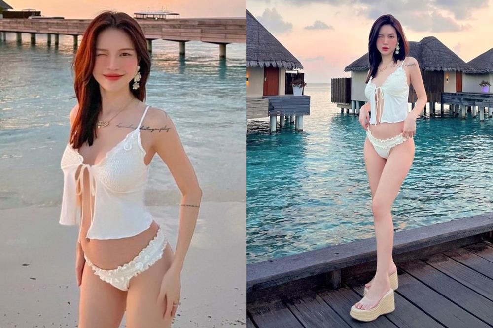 Tammy thường lựa chọn bikini có màu sắc nổi bật như trắng, cam, hồng. Bạn gái rapper B Ray cũng chuộng những thiết kế bikini cắt xẻ, dây buộc hay chi tiết tạo điểm nhấn để tôn lên đường cong quyến rũ của cơ thể (Ảnh: @vitammyn).