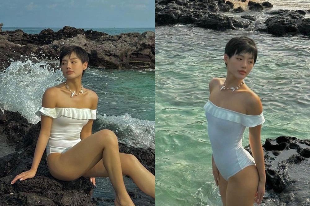 Hàn Hằng yêu thích những bộ bikini có đường cắt và phom dáng đơn giản nhưng tinh tế. Những thiết kế cắt xẻ ở vùng ngực hoặc hông giúp cô tạo được đường cong mềm mại, thu hút ánh nhìn (Ảnh: @han.hang).