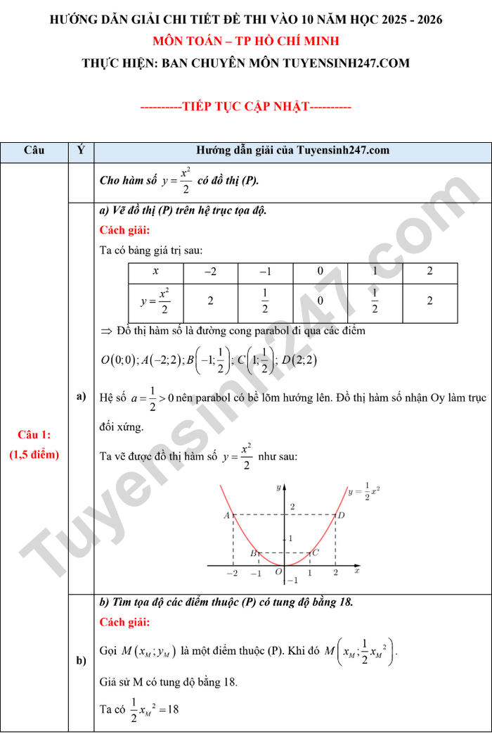 Đáp án đề thi vào lớp 10 năm 2025 môn Toán tại Thành phố Hồ Chí Minh. Nguồn ảnh: tuyensinh247