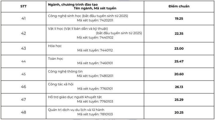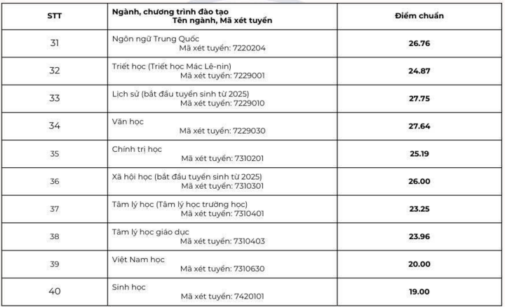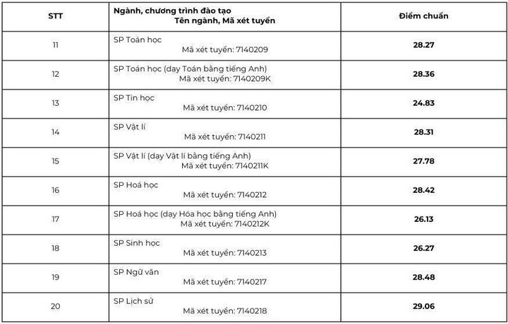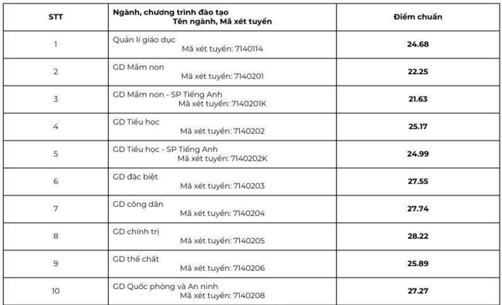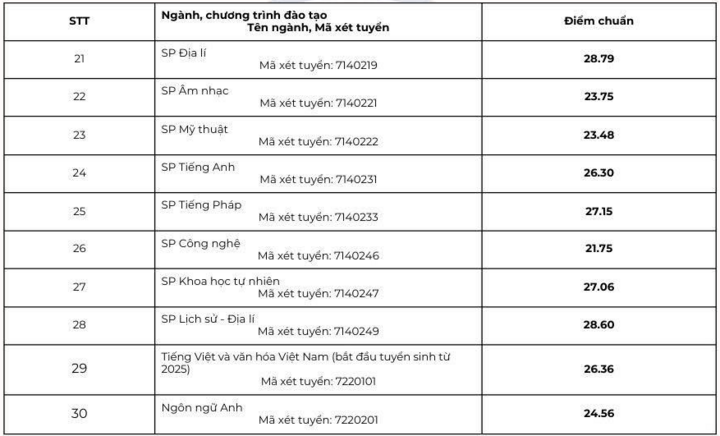 Chi tiết điểm chuẩn các ngành đào tạo trường Đại học Sư phạm Hà Nội 2025 cụ thể như sau: