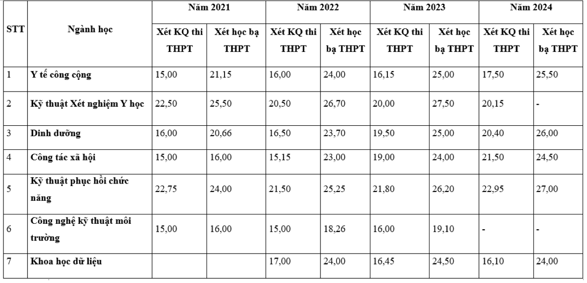 Dưới đây là điểm chuẩn trường Đại học Y tế Công cộng 4 năm gần nhất:
