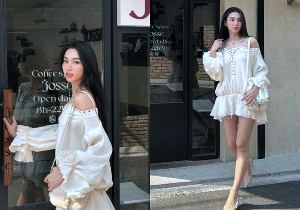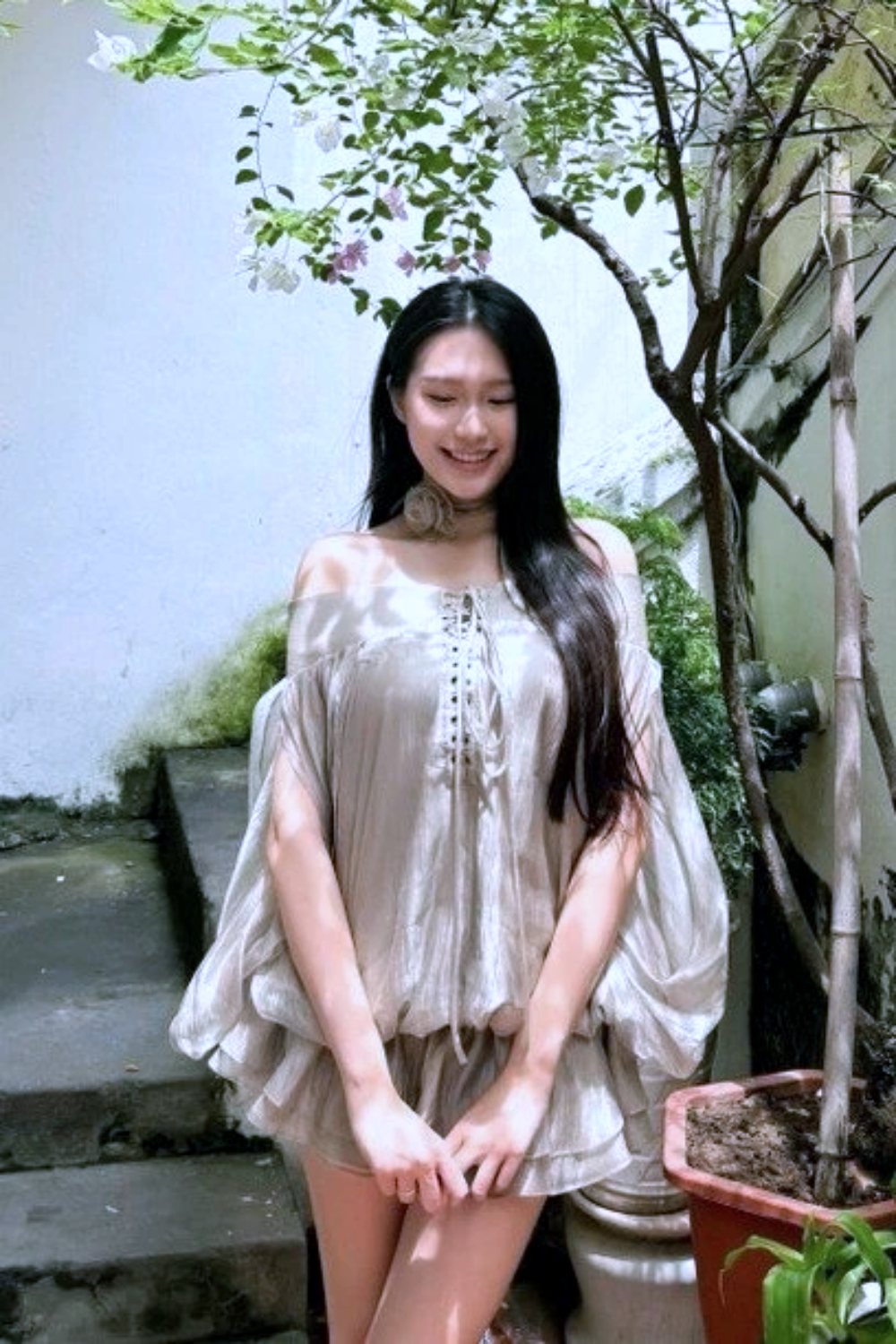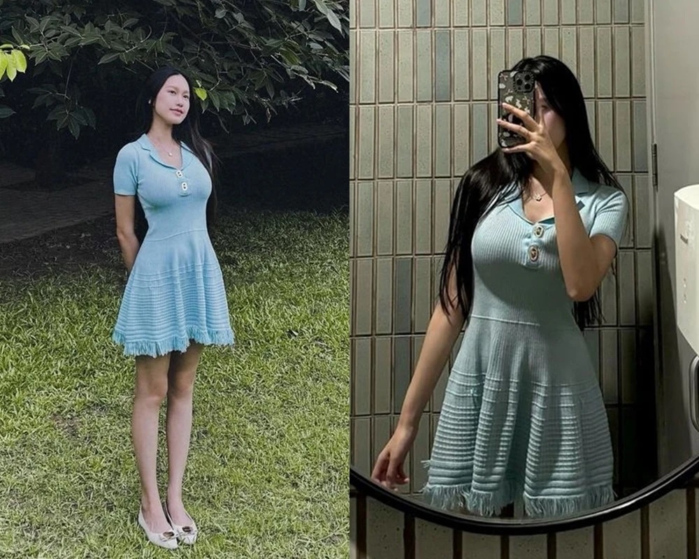 Nhìn vào đôi chân thon gọn của Doãn Hải My, nhiều chị em không thể tin nổi cô sinh con mới được vài tháng vì bà xã Đoàn Văn Hậu lấy lại vóc dáng cũ quá nhanh. Bộ váy này cũng từng được Hoa hậu Thùy Tiên diện đi chơi với bạn bè. Thùy Tiên cũng thả tóc xõa, trang điểm nhẹ nhàng cho hợp với vẻ nữ tính điệu đà của trang phục. Chỉ khác là Miss Grand International 2021 không đeo vòng cổ gắn bông hồng vải như Doãn Hải My mà thôi.