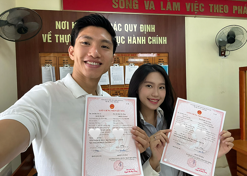 Cặp đôi sau đó cũng nhanh chóng đi đăng ký kết hôn để được trở thành vợ chồng hợp pháp. Vì lịch trình thi đấu bận rộn của Đoàn Văn Hậu, anh lại đang miệt mài hồi phục chấn thương nên cả hai dự kiến sẽ tổ chức đám cưới vào năm 2024.