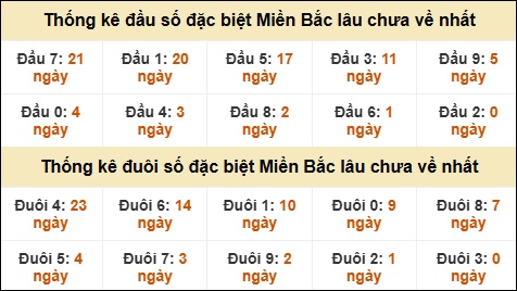 Thống kê đầu đuôi giải GĐB lâu về nhất