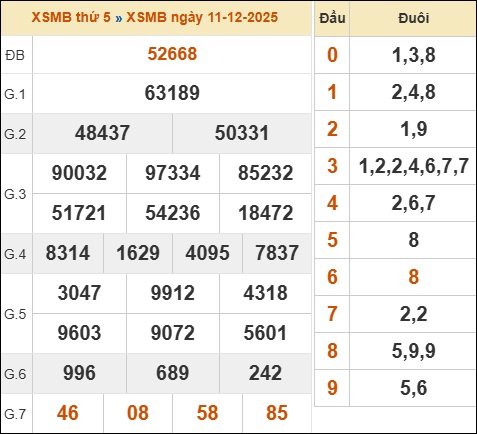 Để gia tăng cơ hội nhận định kết quả XSMB 12/12/2025 đẹp nhất hôm nay, người chơi cần tham khảo bình luận kết quả xổ số miền Bắc đã về trong kỳ trước ngày 11/12/2025 như sau: