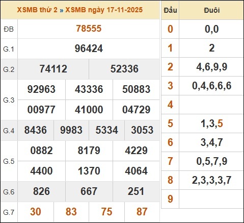 1. ✔️ Xem lại bảng KQXSMB hôm qua 17/11/2025