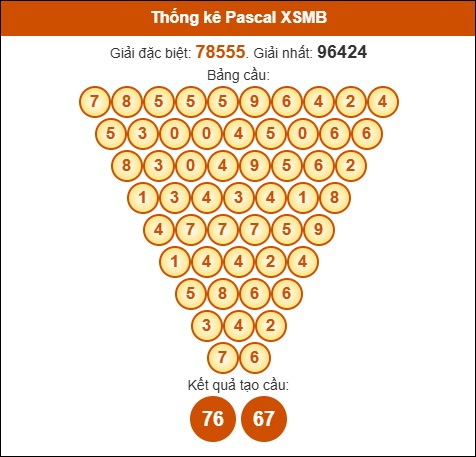Bình luận kết quả xổ số Miền Bắc 18/11 dựa vào tam giác Pascale (được tính theo kết quả: giải ĐB và giải Nhất):