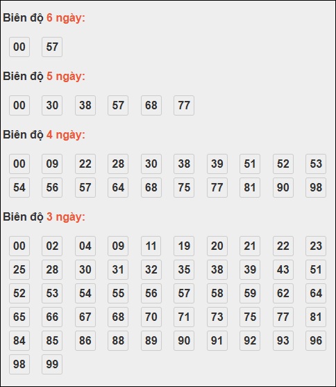 - Kết quả có loto: 00 ⇒ Thống kê bộ số về nhiều: 59