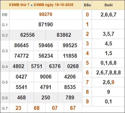 Thống kê XSMB hôm trước ngày 18/10/2025
