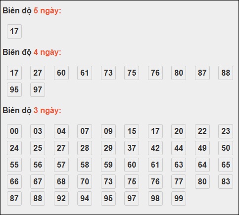 ⇒ Theo dõi thống kê trên, ta thấy chạm đề 1 lâu chưa ra nhất (bao gồm 19 cặp số có chứa số 1), và đã 12 ngày chưa xuất hiện.
